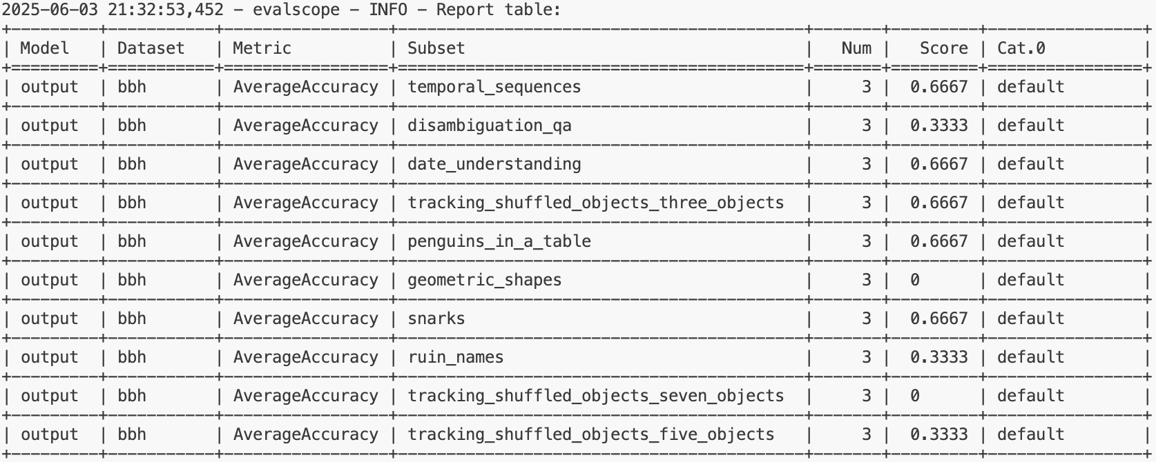 本教程可以学习两种评估测试方法😊,一种是直接使用官方工具,另外一种是使用模型API服务评测(适用于所有模型,包括evalscope没有集成的模型结构)。