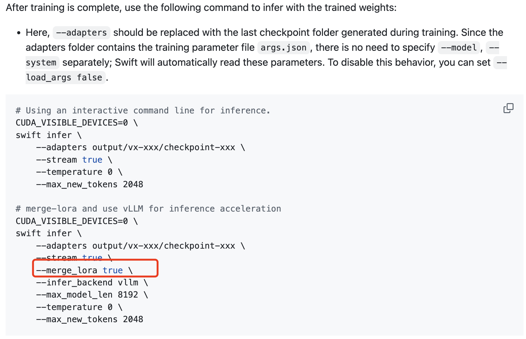 lora微调的话需要合并模型参数,Qwen3和之前的模型不太一样,所以合并的时候不能用之前的代码,可以看到ms-swift官方有下面的代码表示推理,同时又有merge_lora的功能: