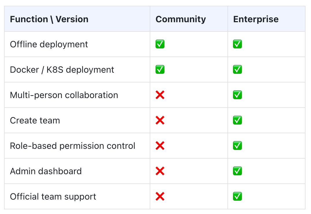 For professional AI research teams, we provide the SwanLab Enterprise Edition, which can be compared with the community edition in the table below: