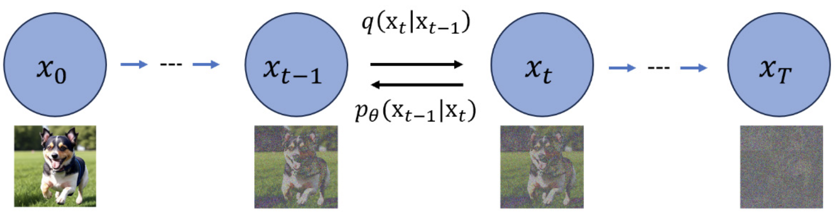 关于扩散模型,我们最常用的还是图像领域的扩散模型,通常来说,图像领域的扩散模型有两个过程,分别是反向加噪过程和正向扩散过程