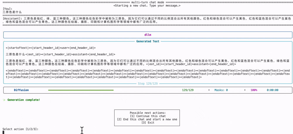 我已经根据dllm的代码设计了测试用的脚本,运行下面的代码就可以进行测试: