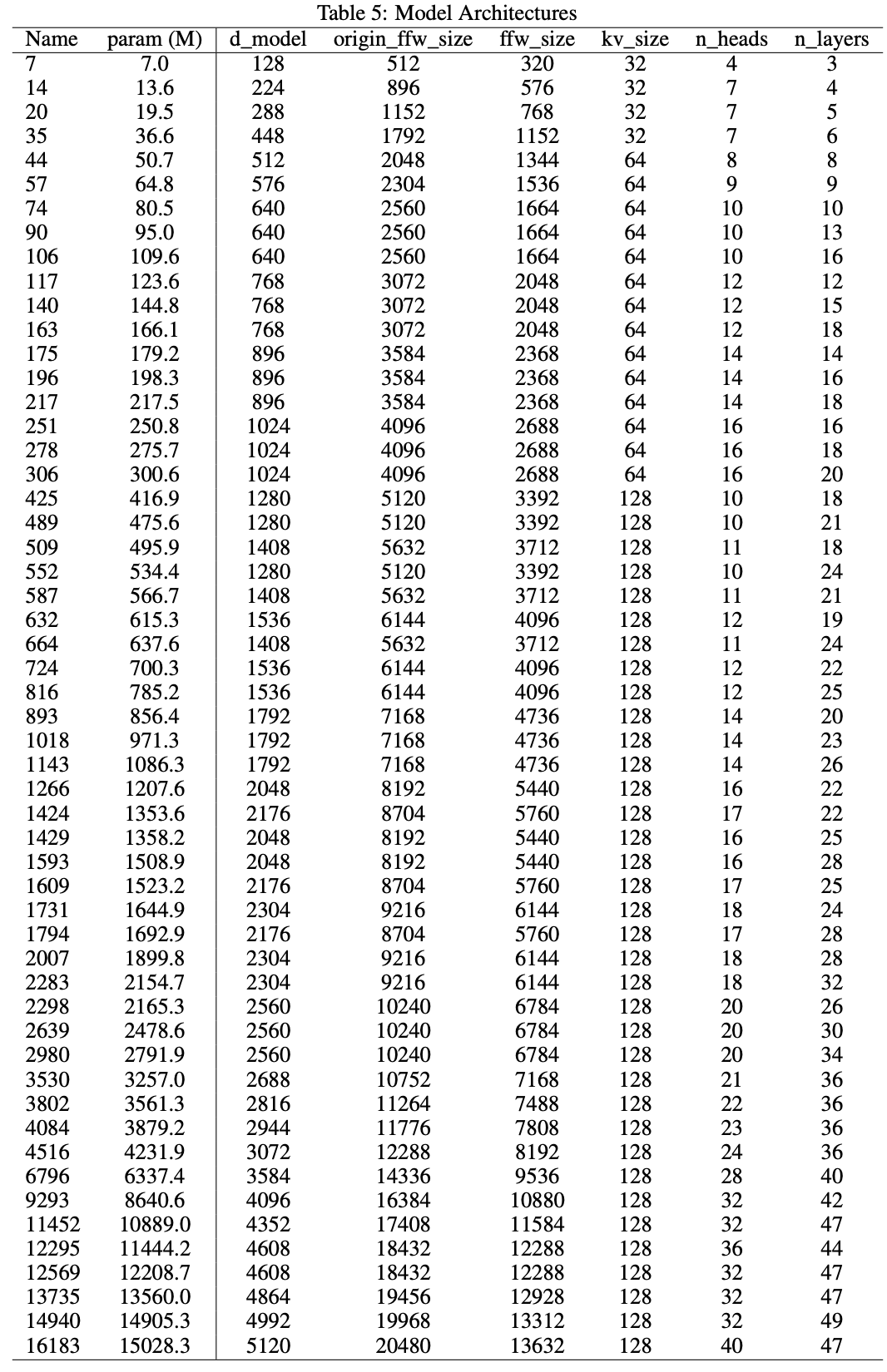 LLaDA 的损失函数是一个变分下界,它优化的是数据似然的近似,这个损失是在所有掩码比例上的期望,因此模型必须学习如何在不同掩码程度下预测被掩码的token,这与扩散模型的最大似然训练一致。对于预训练模型的参数设置,论文中给出了明确的参数配置,当然也可以在模型的config.json中查看,我们看下论文中的结果即可: