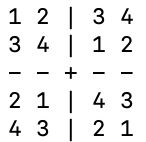 - 每个2x2宫格:数字1-4各出现一次
